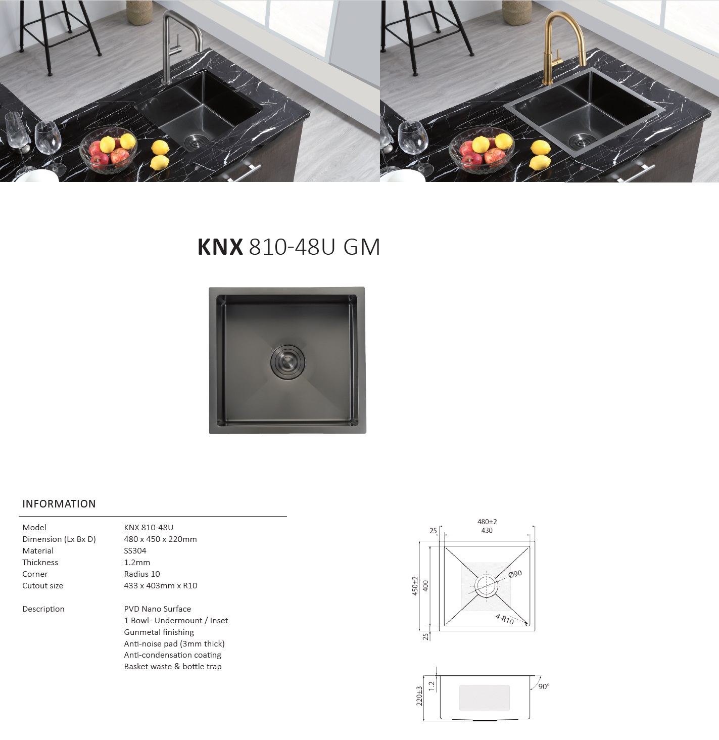 Rubine KNX 810-48U-GM PVD Nano Coating T304 Stainless Steel Kitchen Sink - Ask For Best Offer