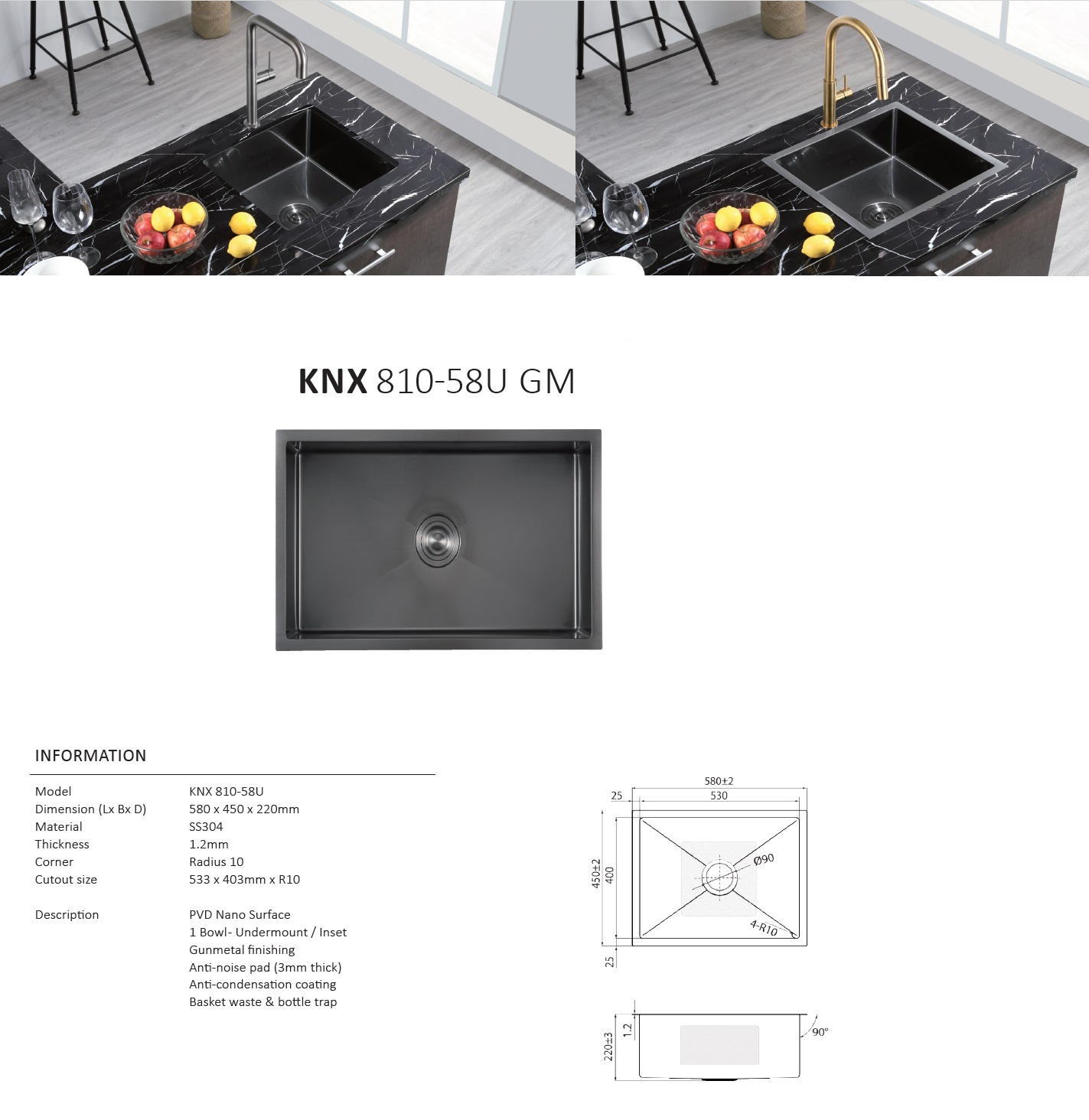 Rubine KNX 810-58U-GM PVD Nano Coating T304 Stainless Steel Kitchen Sink - Ask For Best Offer