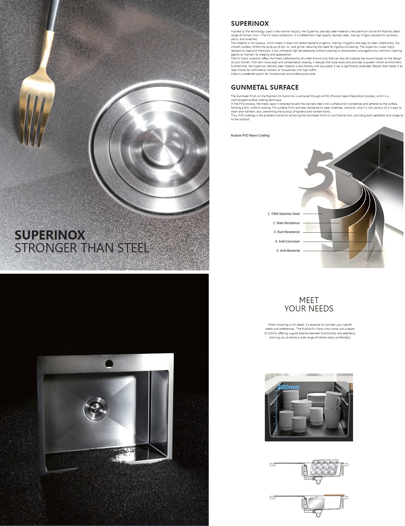RUBINE Stainless Steel Nano Kitchen Sink - KNX 810-60-GM