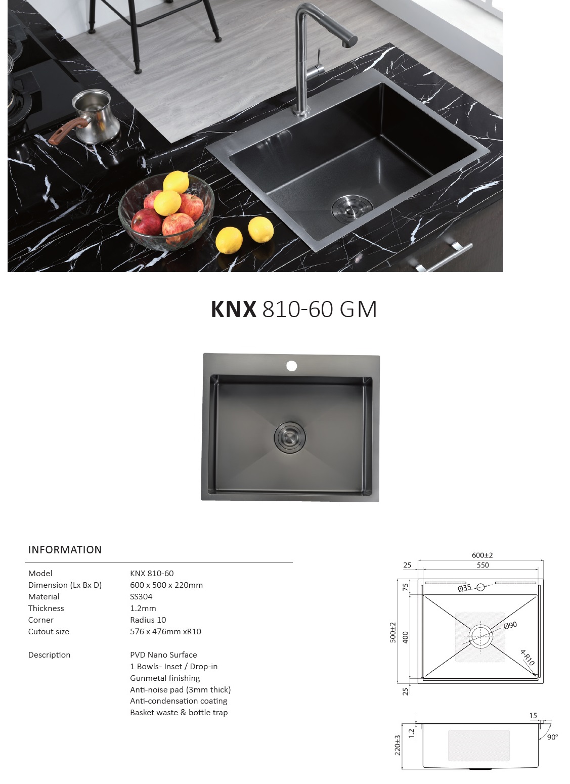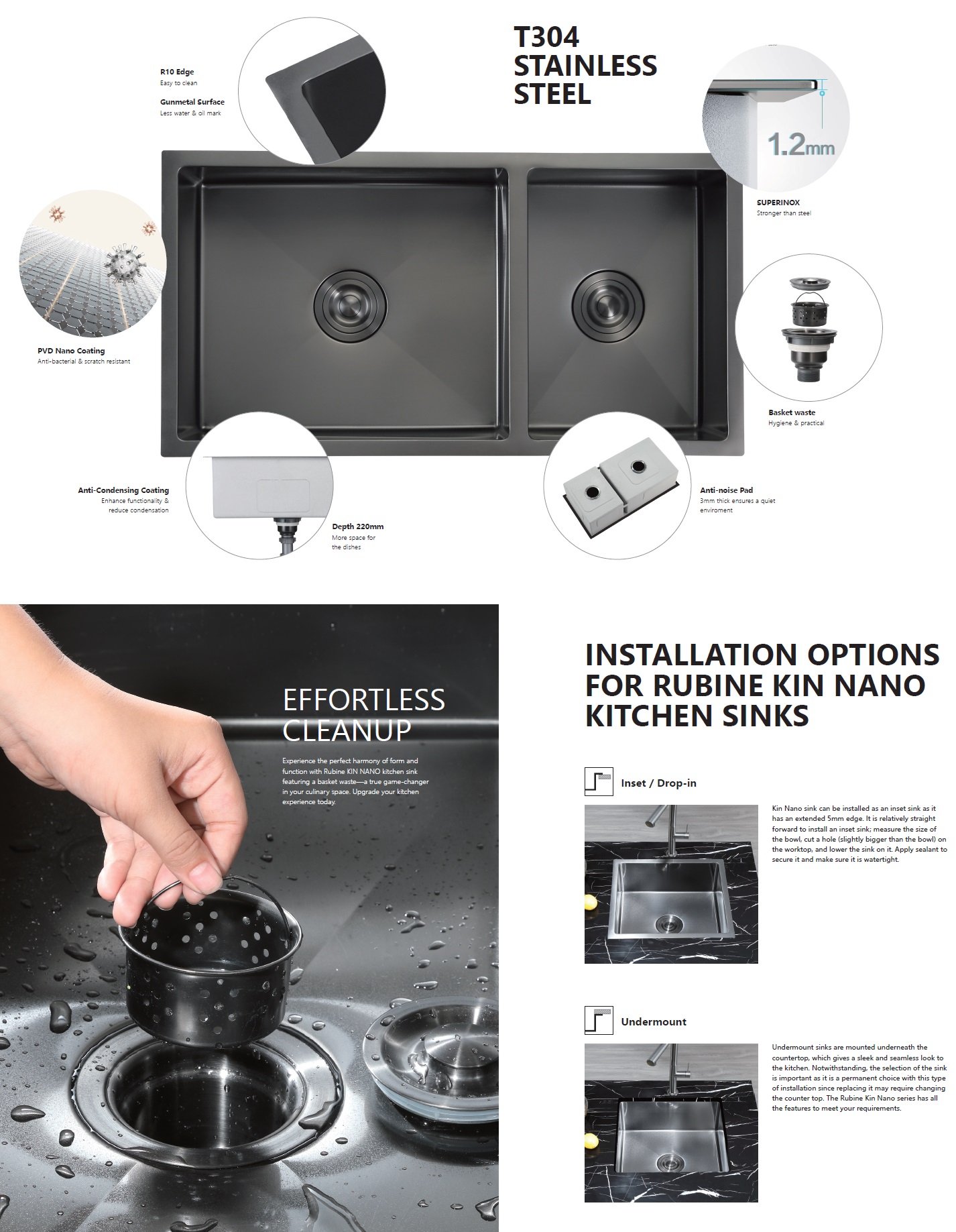 Rubine KNX 810-60-GM PVD Nano Coating T304 Stainless Steel Kitchen Sink - Ask For Best Offer