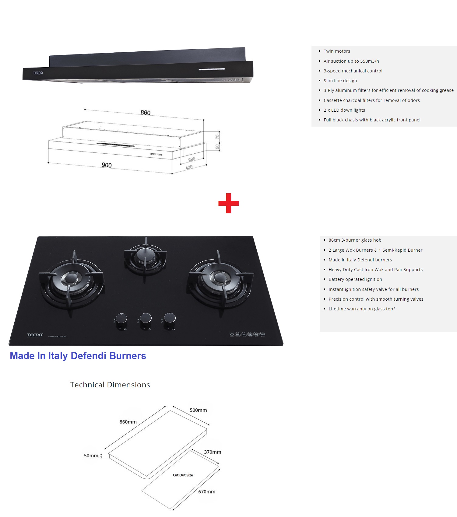 TECNO Cooker Hob + Cooker Hood Bundle Offer - Black Series