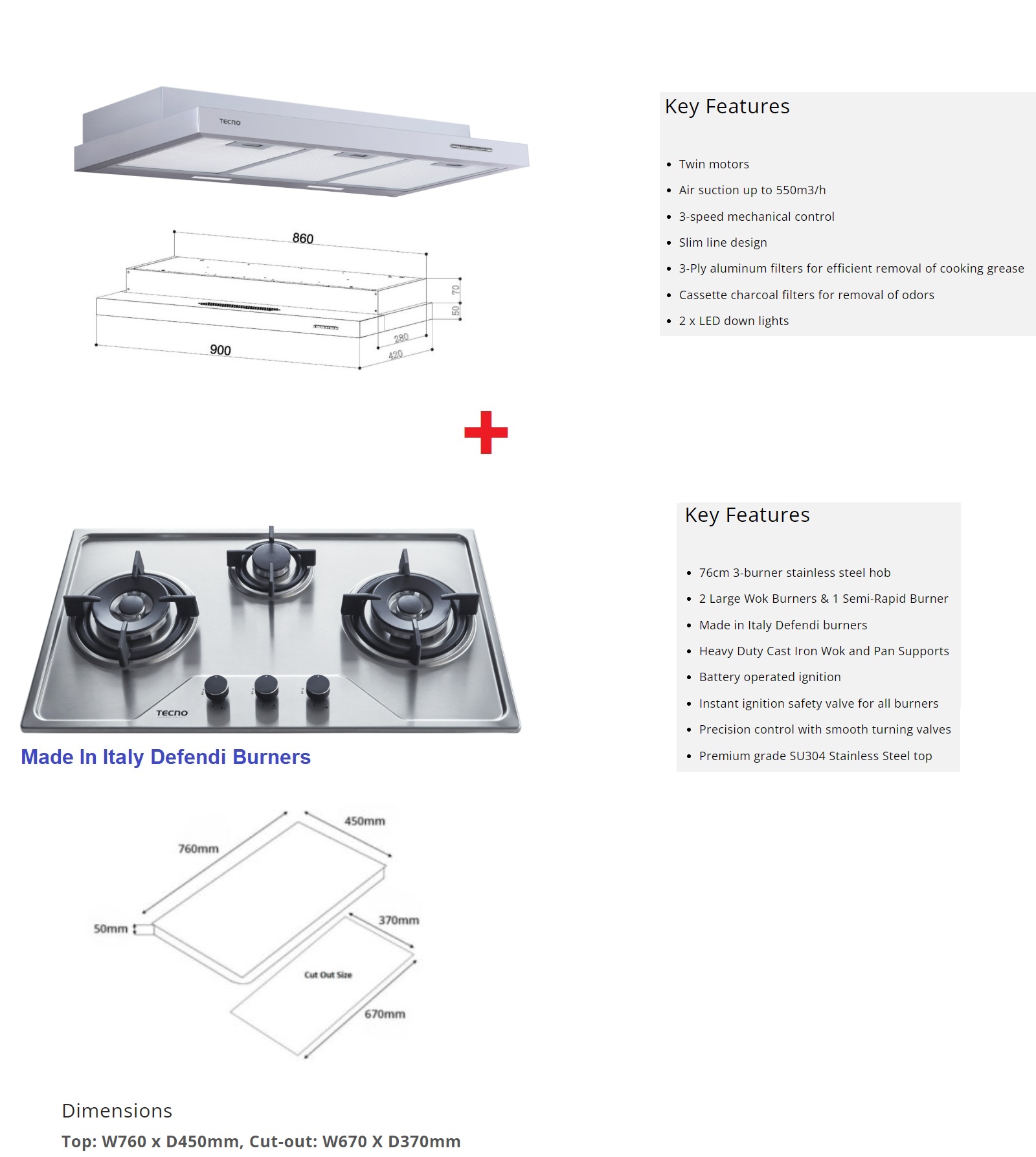 TECNO Cooker Hob + Cooker Hood Bundle Offer - Stainless Steel Series