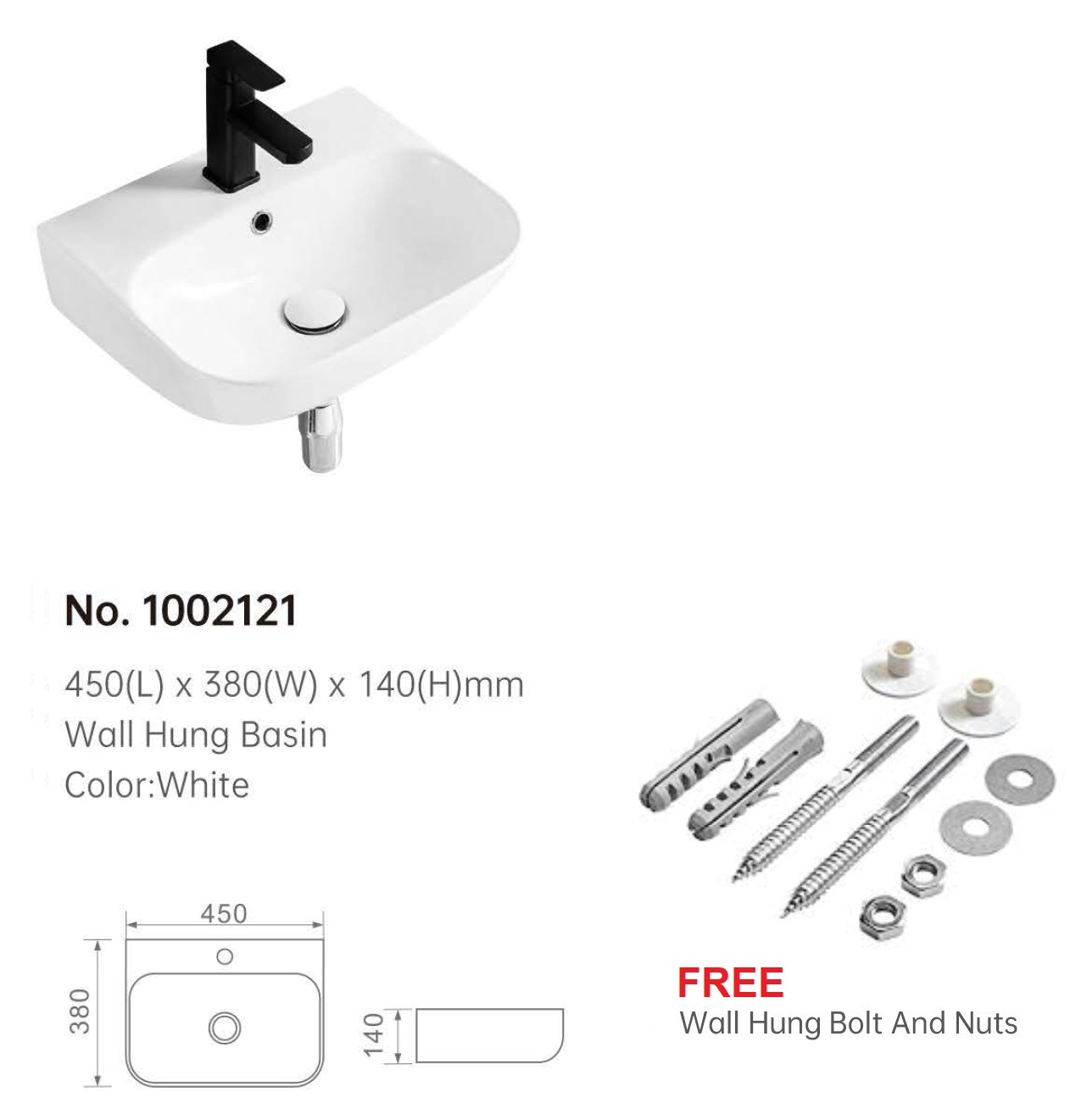 450mm Wall Hung Wash Basin