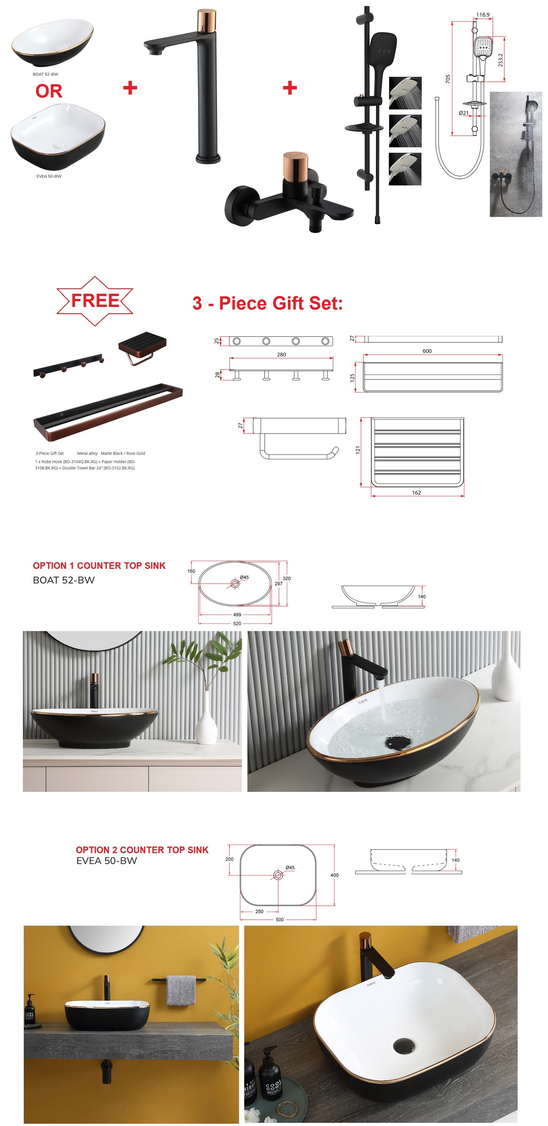 Bathroom Essential Products Year End Bundle Offer 2 - Matt Black/Rose Gold