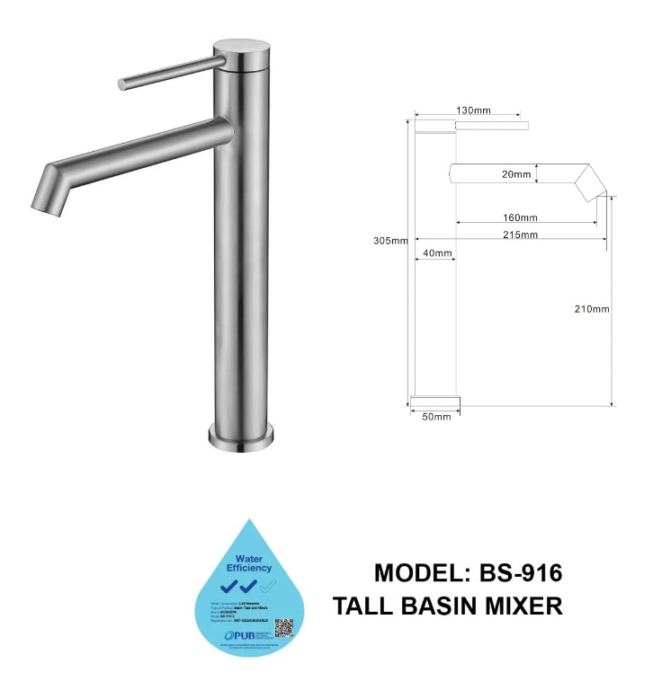 BOSHSINI Stainless Steel Tall Basin Mixer Tap BS-916