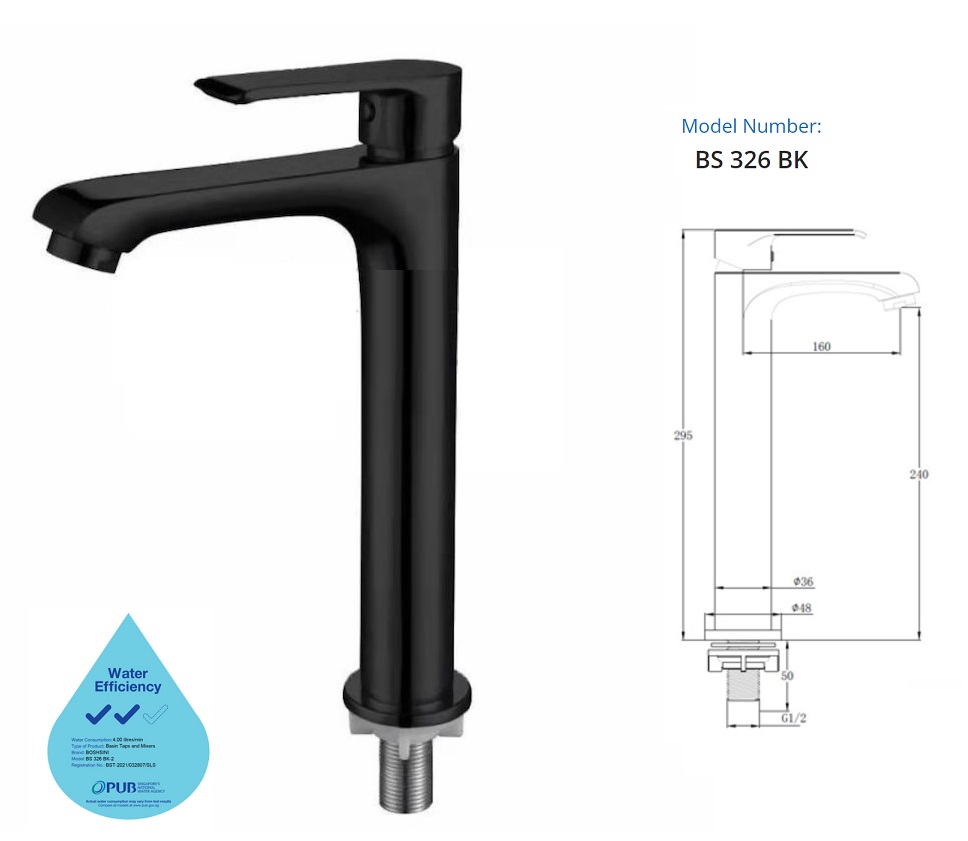 BOSHSINI BS 326 BK Tall Basin Cold Water Tap