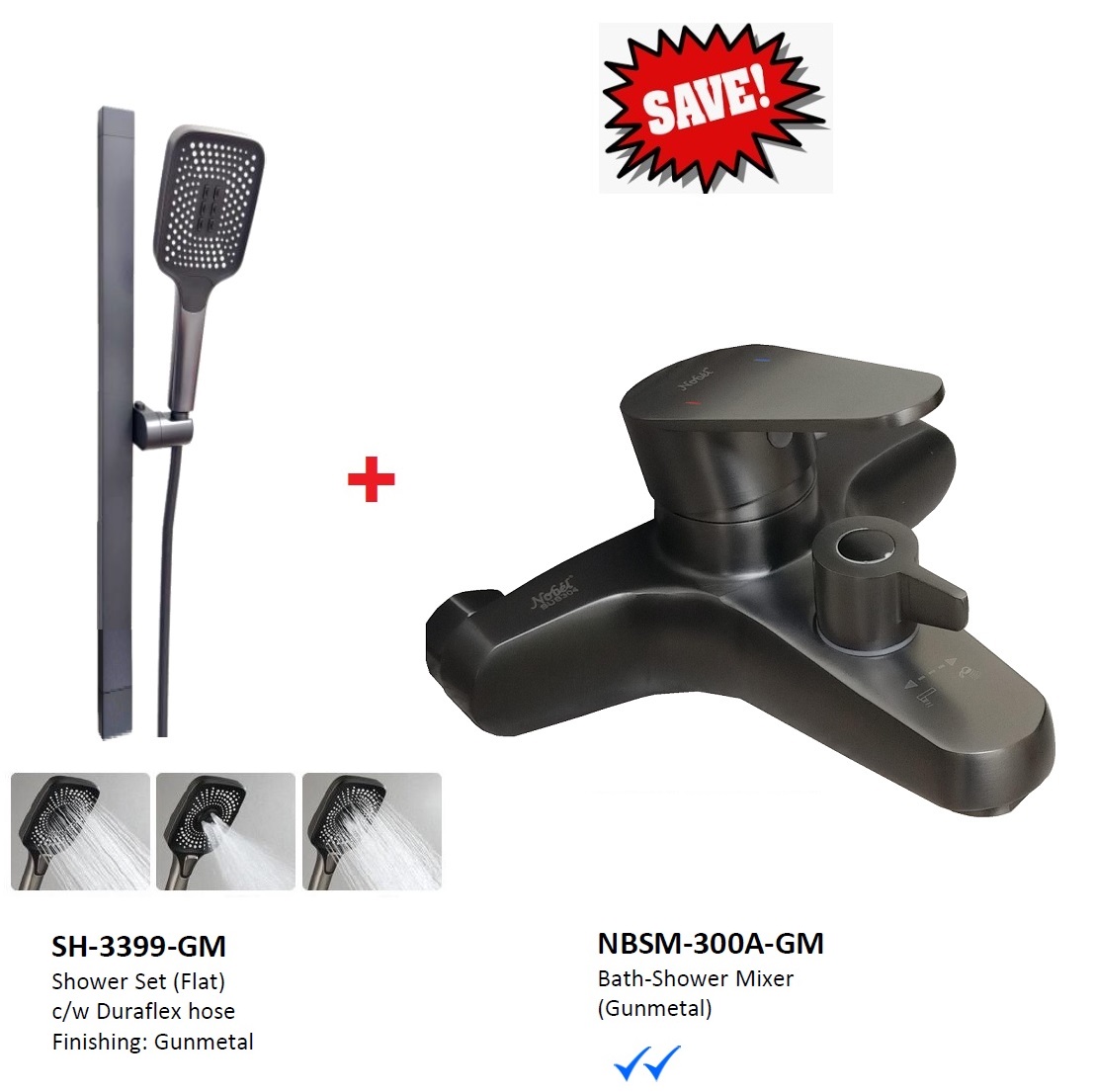 NOBEL Bathroom Shower Set Bundle With Bath Mixer - Gun Metal Colour