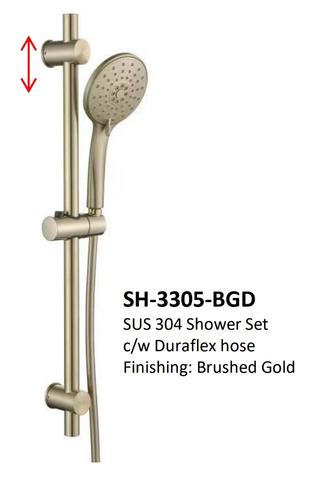 NOBEL Bathroom Shower Set SH-3305-BGD With Sliding Rod - Brush Gold
