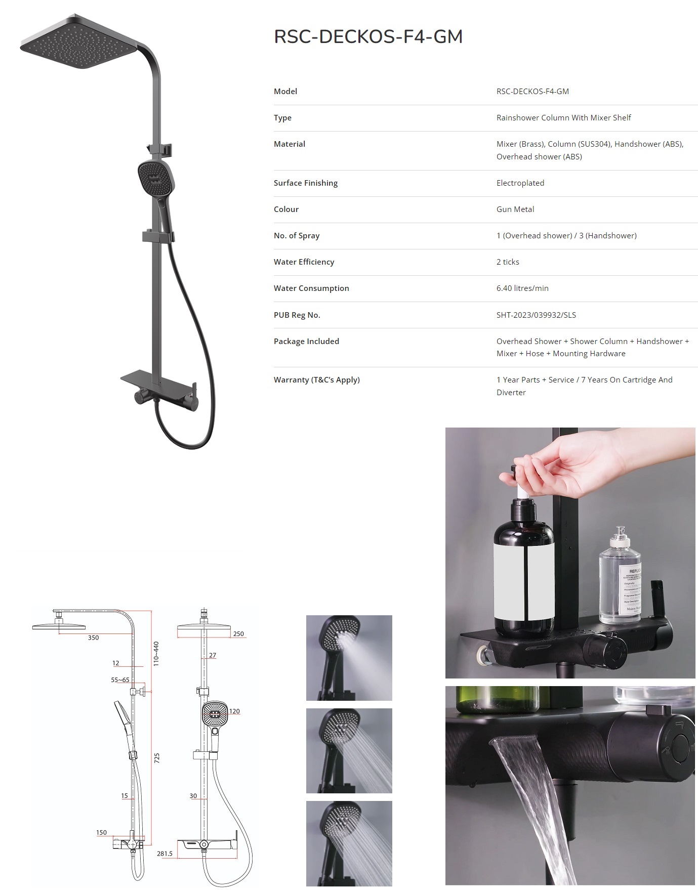 RUBINE Rain Shower Set RSC-DECKOS-F4-GM