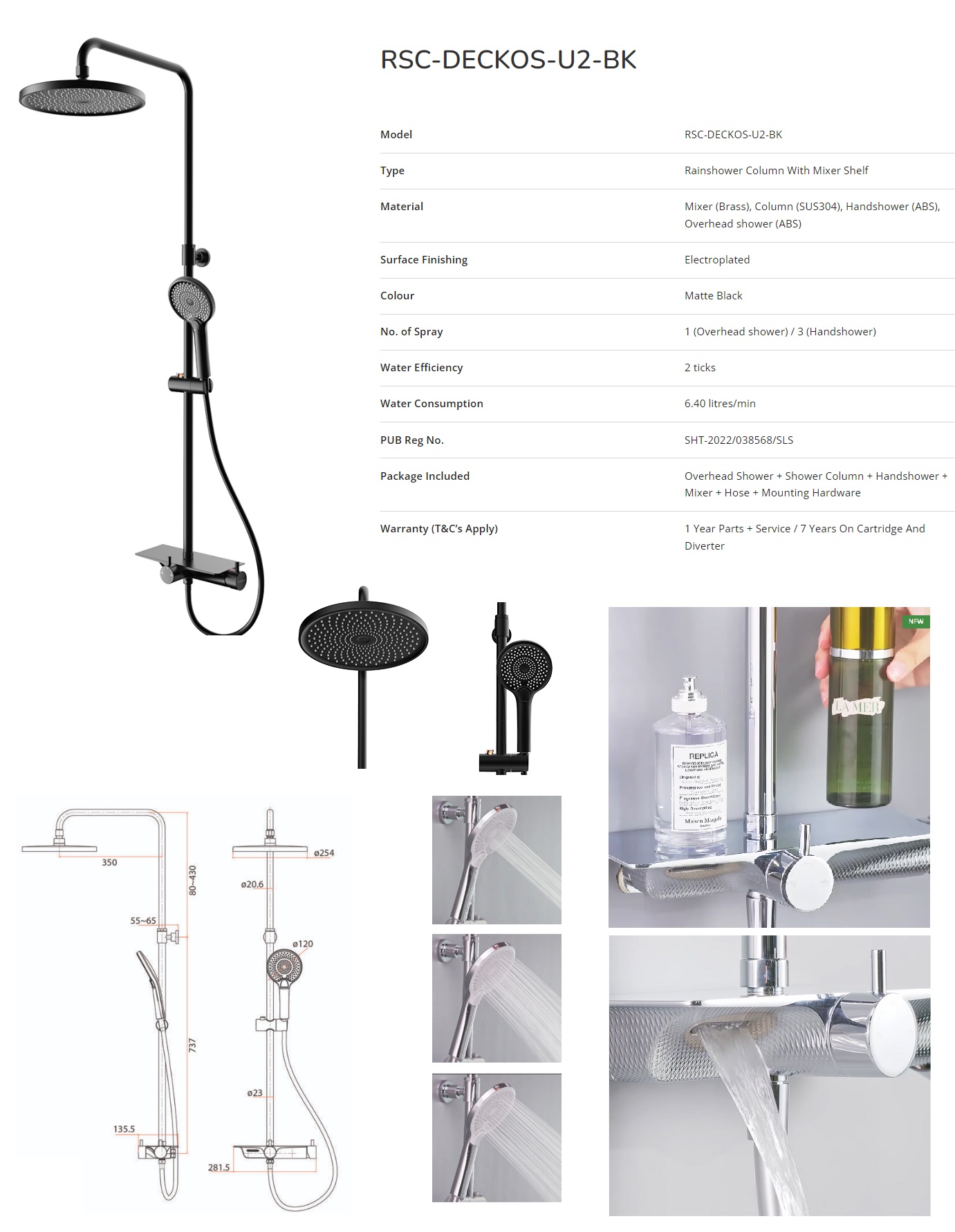 RUBINE Rain Shower Set RSC-DECKOS-U2-BK