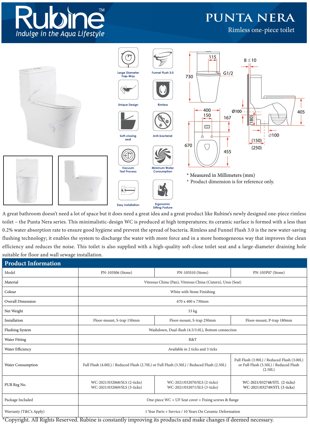 RUBINE Toilet Bowl With Marble Line Texture. Check With Us For Special Offer